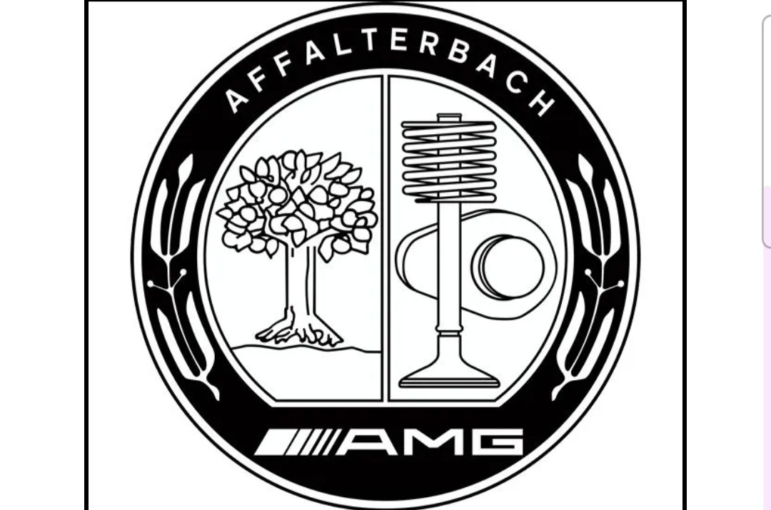 회사 이름인 AMG의 약자는 Aufrecht Melcher Großaspach, 아우프레히트 메르셔 그로사스파흐로, 설립자 Hans-Werner Aufrecht의 A, Erhard Melcher의 M, 그리고 탄생지인 Großaspach의 G를 나타낸다. 따라서 아우프레히트(Aufrecht)와 멜처(Melcher)의 이름, 그리고 그들의 고향 그로사스파흐(Grossaspach)의 머리글자를 따서 지었다. AMG의 로고에 그려진 사과나무도 창업당시 공장부지가 사과밭이었다는 점을 나타내서 디자인하였다.